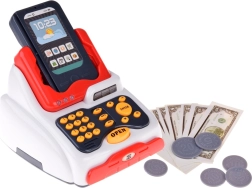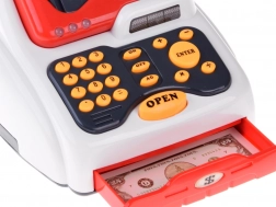 La cassa offre effetti sonori alla pressione dei tasti ed effetti luminosi grazie a tre LED colorati. Il cassetto portadenaro si apre premendo il tasto "open".