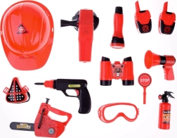 Il set include tutto il necessario per giocare a fare i pompieri: casco, occhiali, megafono, maschera e altri accessori di sicurezza.