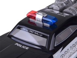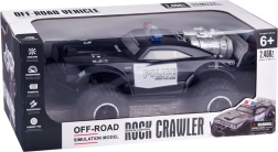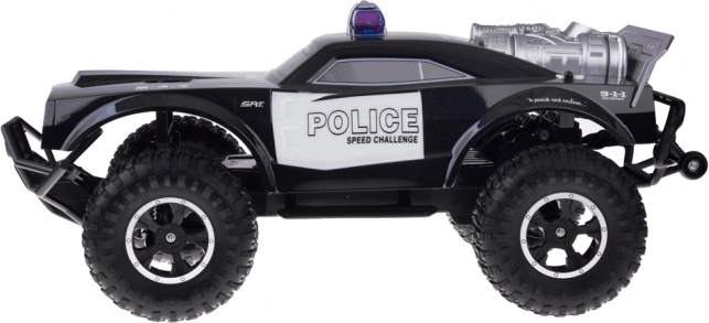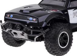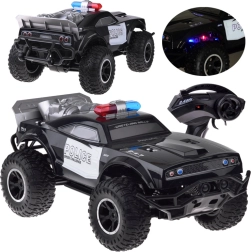 Questo grande monster truck è realizzato in plastica flessibile, il che lo rende leggero. Le grandi ruote in gomma con ammortizzatori sospesi garantiscono un'ottima aderenza al terreno e una facile manovrabilità nelle curve. Il veicolo è dotato di un'allineamento regolabile delle ruote, che contribuisce a un miglior controllo. Un vero spettacolo sono le luci lampeggianti rosse e blu, che imitano i segnali della polizia e brillano al buio, creando un'esperienza realistica.