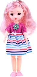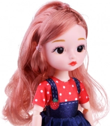 La bambola è vestita con abiti colorati e scarpe rosa che possono essere facilmente rimosse. Il suo viso delicato è incorniciato da lunghi capelli lucidi, che possono essere pettinati e stilizzati in diverse acconciature. Grazie ai giunti mobili, la bambola può essere posizionata in diverse pose, ad esempio seduta o con le braccia piegate.