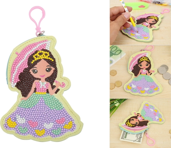 Portafoglio divertente e colorato per conservare piccoli oggetti, dotato di cerniera e passante per un trasporto comodo.