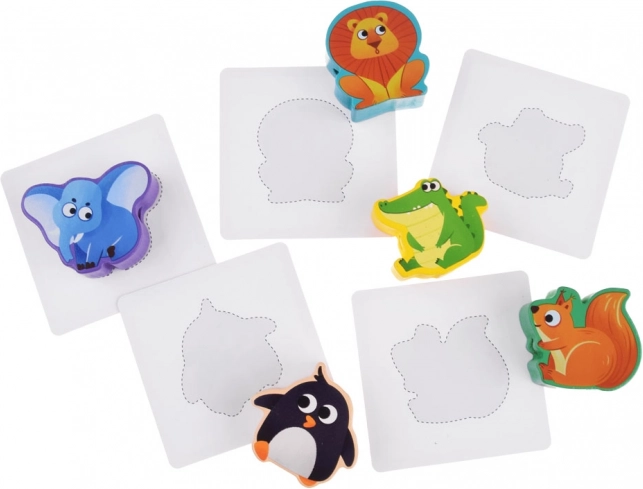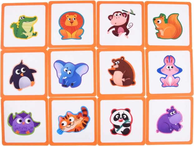 - Include 12 carte fronte-retro: un lato mostra l'illustrazione di un animale, mentre l'altro mostra solo i suoi contorni. L'obiettivo è abbinare il blocco giusto al contorno corretto.