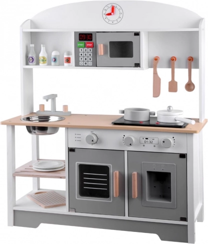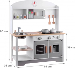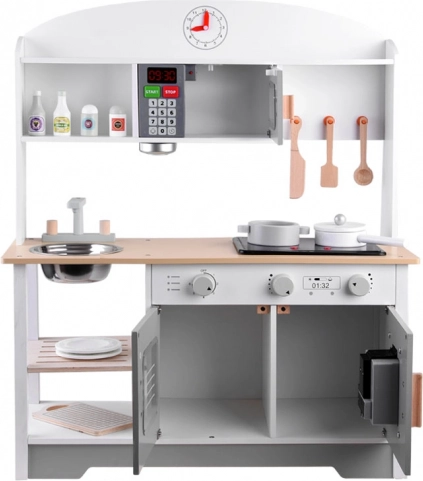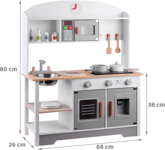 Questa cucina per bambini è esteticamente studiata e garantisce non solo un grande divertimento, ma contribuisce anche allo sviluppo del bambino. I bambini amano imitare gli adulti e questa cucina permette loro di fingere di cucinare, pulire e svolgere altre attività domestiche.