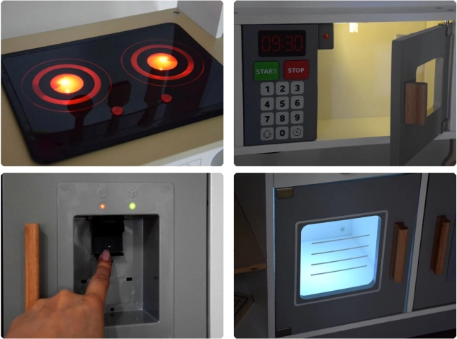 Effetti sonori di cottura, illuminazione del piano cottura e dispensatore d'acqua funzionante assicurano il massimo coinvolgimento nel gioco.
