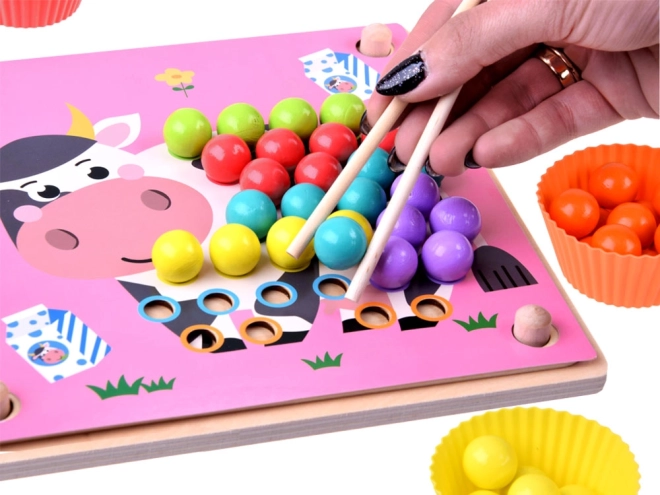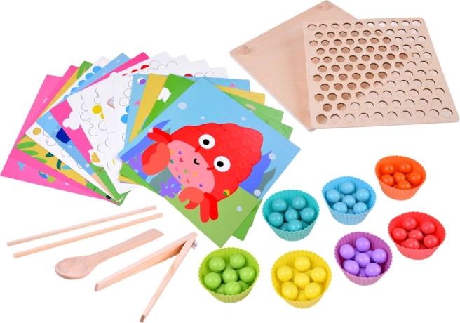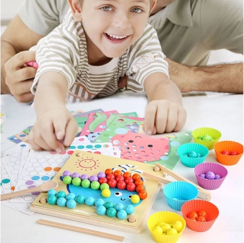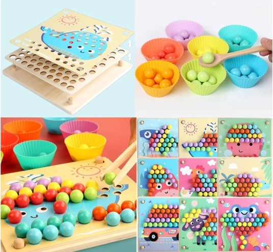 Mosaico educativo in legno per bambini: un ottimo divertimento e allenamento per la mente. Questo set consente di esercitare concentrazione, attenzione, riconoscimento dei colori, allenamento delle mani, abilità motorie e porta molte emozioni positive. È un giocattolo educativo per i più piccoli che aiuta a imparare forme e colori, contare e coordinare occhio e mano.