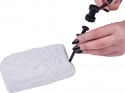 Scopri il mondo dell’archeologia con un set educativo per giovani archeologi e cercatori di tesori. Il set Scavi archeologici con pietre è ideale per ogni giovane esploratore che desidera vivere l’emozione degli scavi. Questo gioco permette di simulare la ricerca archeologica in una forma nuova, unica e accattivante. Il compito dell’esploratore è, con l’aiuto di martelletto, scalpello e pennellino, riportare alla luce cristalli, diamanti e pietre nascosti nel calco in gesso.