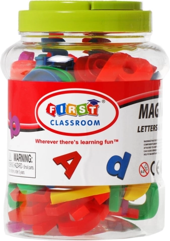 Il set include lettere minuscole e maiuscole nonché numeri e simboli matematici, risultando adatto a bambini in età prescolare e della scuola primaria. I magneti aderiscono bene al frigorifero, alla lavagna magnetica o ad altre superfici metalliche e sono ideali per attività familiari condivise.