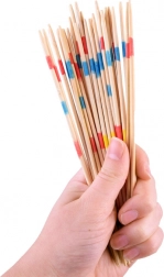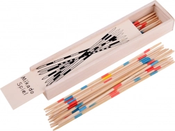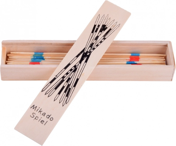 Goditi un divertimento senza tempo con il mikado in legno. Si lascia cadere il fascio di bastoncini sul tavolo e i giocatori si alternano nel sollevarli con attenzione in modo che nessun altro si muova. Le diverse strisce colorate indicano il valore in punti – vince chi totalizza il punteggio più alto.