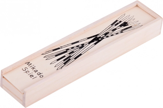 Mikado classico per 2 o più giocatori, in legno di alta qualità. 31 bastoncini appuntiti con strisce colorate e valore in punti mettono alla prova pazienza, concentrazione e motricità fine. Ideale come gioco per famiglie e come regalo in una elegante scatola di legno.