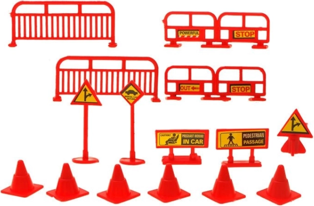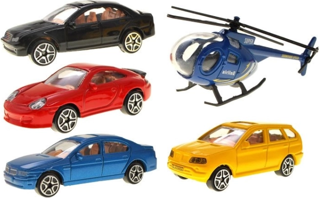 Inclusi 4 automobiline in metallo e un elicottero in metallo con propria area di atterraggio. Non mancano segnali stradali e coni per un gioco di traffico realistico.
