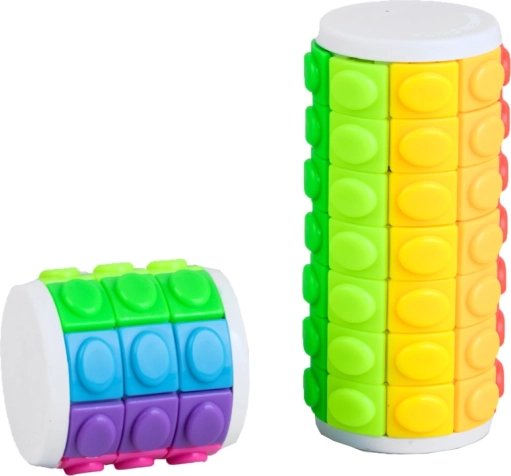 Questo originale rompicapo ha la forma di un cilindro con anelli rotanti e un campo libero, grazie al quale puoi spostare gli elementi a piacere. L’obiettivo è ordinare i livelli per colori uguali oppure creare il tuo motivo. La confezione include due tazze/puzzle di dimensioni diverse e con difficoltà variabile: la più piccola con 3 livelli e la più grande con 7 livelli.