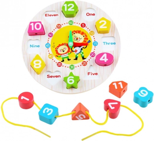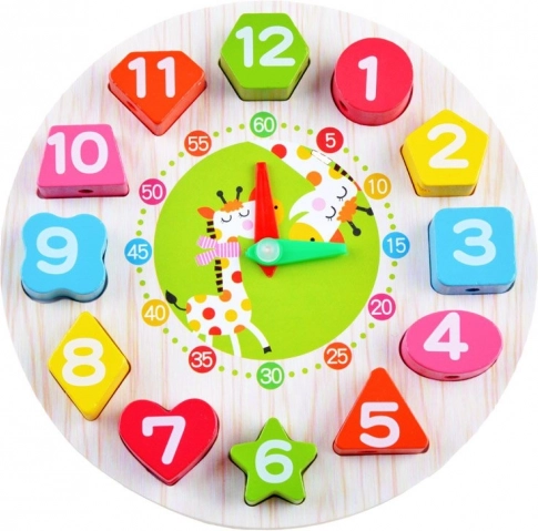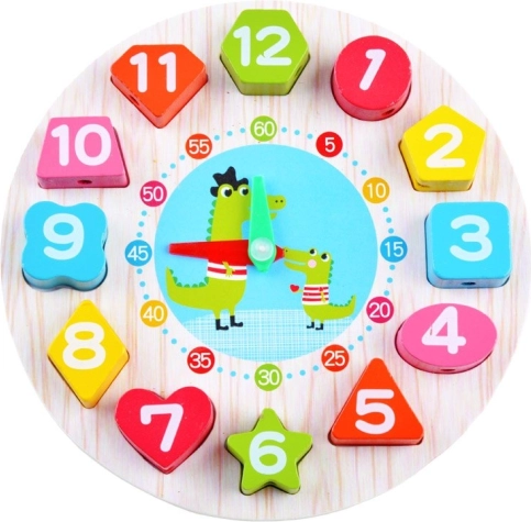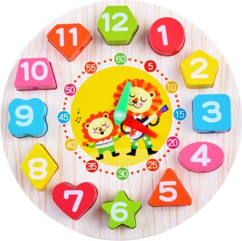 Scopri un intelligente gioco educativo che unisce il training per leggere l’ora al riconoscimento di numeri, colori e forme. La robusta struttura in legno e le giocose illustrazioni di animali catturano subito l’attenzione dei bambini, mentre i pezzi da inserire e le lancette mobili supportano la coordinazione occhio–mano e il pensiero logico.