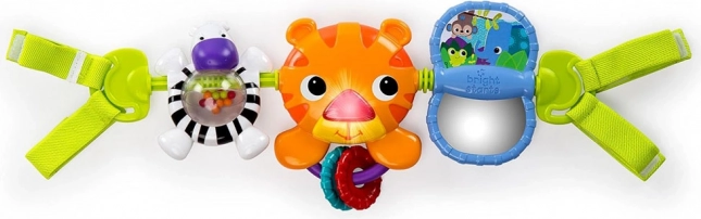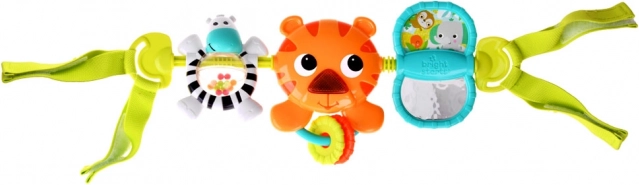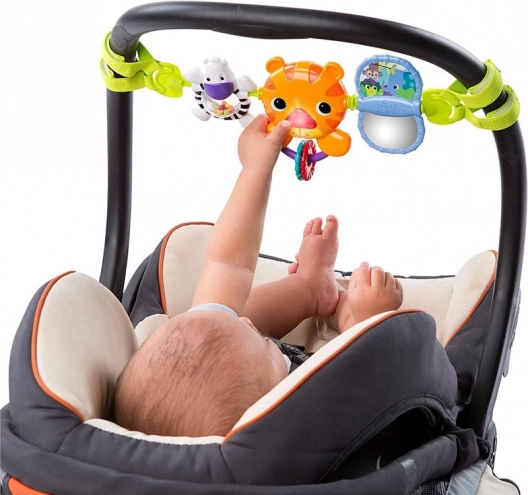 Con bande tessili, il giocattolo si fissa facilmente al passeggino, al seggiolino auto o alla culla, offrendo divertimento a casa o in viaggio.