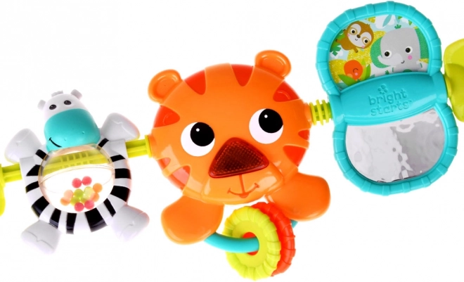 Progettato con bellissimi colori e texture, questo giocattolo sospeso include vari motivi tra cui una tigre, una zebra e uno specchio, ampliando le opzioni di gioco per il tuo piccolo esploratore. Premendo il naso della tigre, questa si illumina e suona melodie, stimolando i sensi e promuovendo lo sviluppo delle capacità motorie fini.