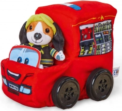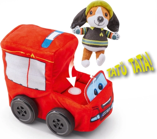 Il camion dei pompieri è dotato anche di effetti sonori. Premendo il cane di peluche senti i rumori del motore e della sirena. Il telecomando permette di attivare il clacson. Il cane di peluche è staccabile, permettendo ai bambini di inventare diverse storie.