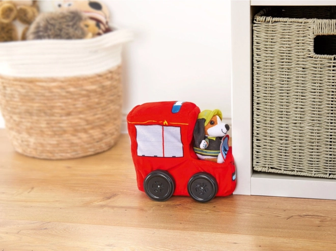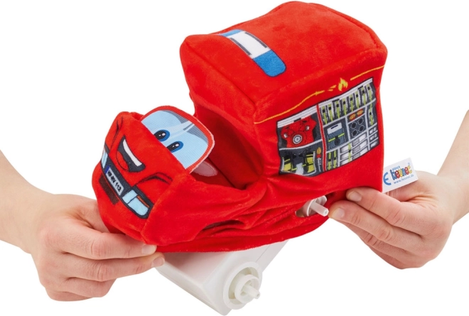 Il telaio di questo camion dei pompieri è realizzato in plastica, mentre la carrozzeria è di morbido peluche, il che offre diversi vantaggi: