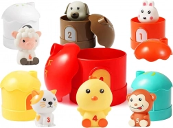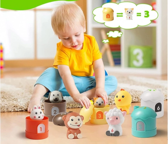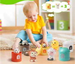 Questo set di animali e casette stimola la creatività dei bambini e l'apprendimento attraverso un modo giocoso di imparare i numeri e sviluppare abilità motorie.