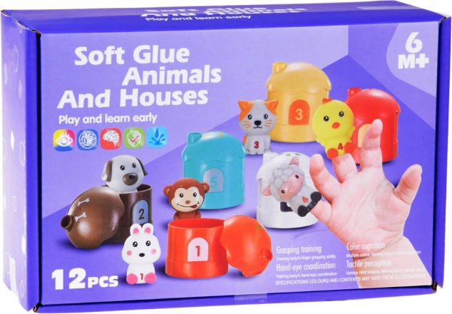 Set di piccoli animali in gomma con casette e numeri