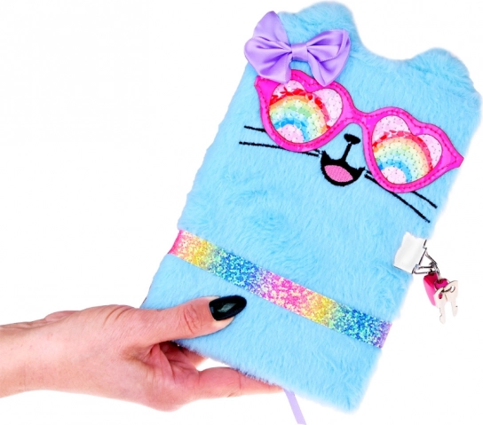 Questo affascinante diario in peluche è ideale per ogni ragazza che vuole custodire i propri segreti al sicuro grazie alla piccola serratura rosa. La copertina blu morbida e vellutata non solo è esteticamente piacevole, ma anche piacevole al tatto, e la striscia arcobaleno brillante aggiunge ancora più stile.