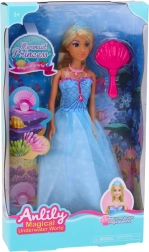 La magica bambola ANLILY principessa del mare trasporta i bambini nel mondo delle avventure sottomarine. Ha lunghi capelli dorati, un elegante abito blu a tema marino e una coroncina. Inclusa una spazzola per pettinare per un gioco creativo e lo sviluppo della fantasia. Ideale per bambini dai 3 anni, con certificazione CE e conformità alla norma EN71.