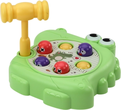 Questo gioco consiste nel colpire con il martelletto le piccole figure che spuntano in varie parti del corpo del coccodrillo. Questa attività dinamica sviluppa precisione e coordinazione dei movimenti, e insegna ai bambini anche concentrazione e velocità di reazione.