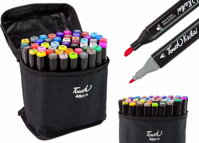 Set di 48 pennarelli alcolici a doppia punta con custodia