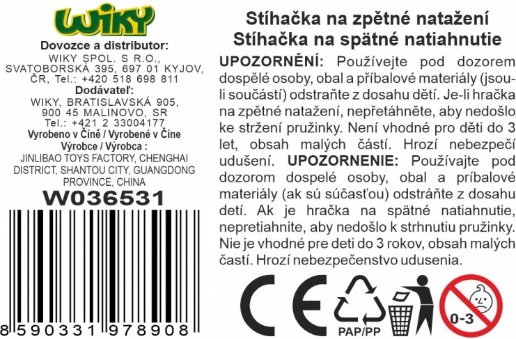 Caccia di metallo a retrocarica con dimensioni 10x7x4 cm disponibile in quattro varianti di colore: bianco, blu, verde, e giallo.