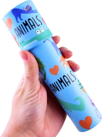 Scopri la magia dei motivi colorati con il caleidoscopio per bambini, un classico giocattolo che sviluppa la fantasia e la percezione visiva. Basta ruotare il tubo per vedere apparire davanti ai tuoi occhi infiniti disegni simmetrici fatti di frammenti colorati. Il tubo in cartone leggero e resistente con motivi di animaletti è ideale per i piccoli esploratori.