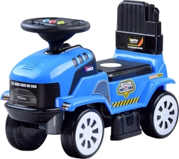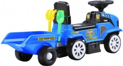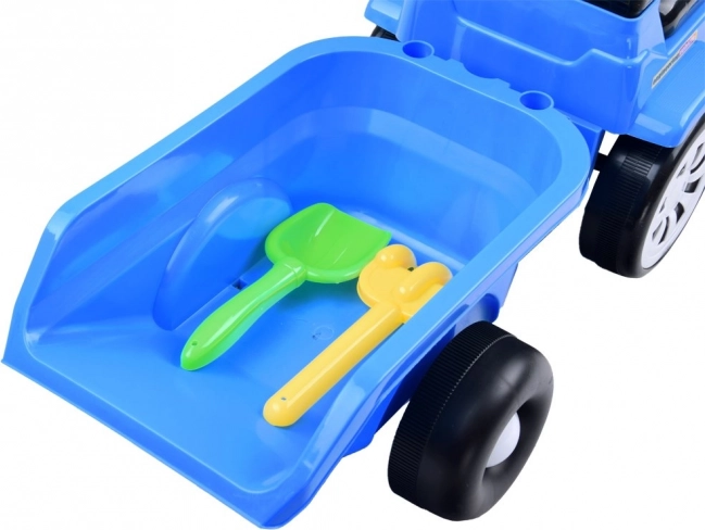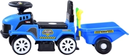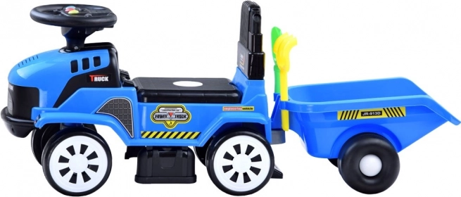 Macchinina a spinta per bambini a forma di trattore con rimorchio staccabile: divertente a casa e in giardino. Offre effetti luminosi, allegre melodie sul volante, vano portaoggetti sotto il sedile e design ergonomico per una guida sicura. Inclusi giochini – paletta e rastrello e possibilità di collegare il rimorchio.