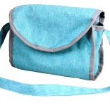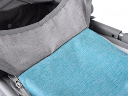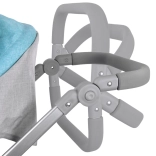 Maniglione regolabile e morbido, cinture di sicurezza, capottina pieghevole e ampio cestello completati da una borsetta rimovibile per gli accessori.