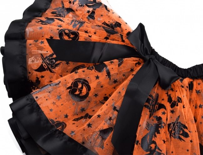 - Gonna tutu arancione con bordo satinato nero e stampe a tema Halloween.