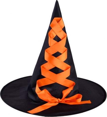 Il classico cappello da strega nero con nastro satinato arancione dona al costume un look autentico e mantiene perfettamente la forma.