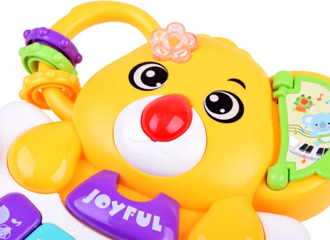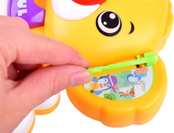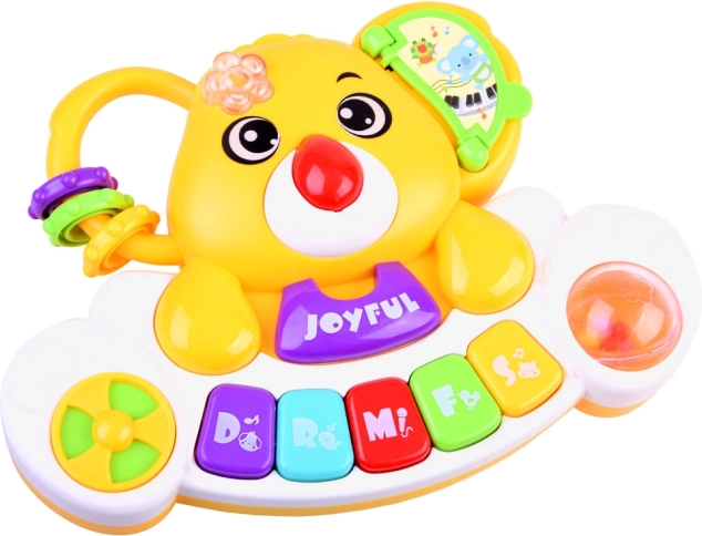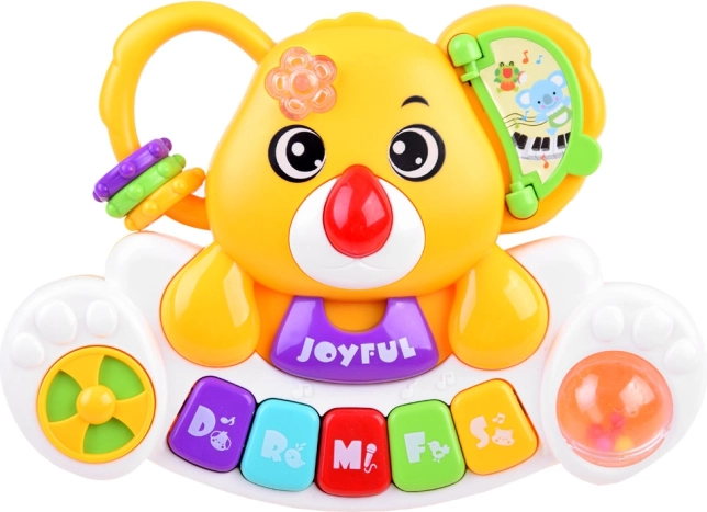 Questo pianino interattivo e colorato unisce apprendimento e divertimento. I bambini scoprono la scala di base Do–Sol, ascoltano melodie allegre e autentici suoni di animali (cane, gallo, cavallo, gatto, elefante). Ogni pressione dei tasti è accompagnata da una lucina lampeggiante che cambia colore e stimola la vista.