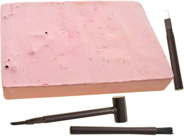 - Dotazione completa: blocco, martelletto con raschietto, scalpello e pennello