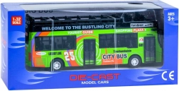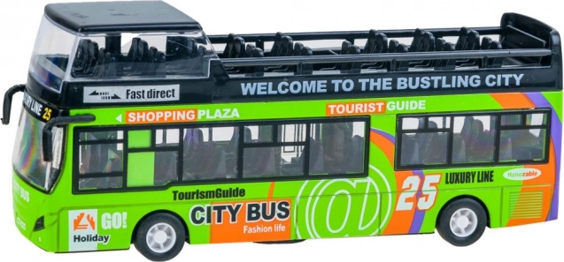 Elegante autobus a due piani in metallo che farà felici piccoli autisti e passeggeri. Grazie al meccanismo pull-back, alle porte scorrevoli apribili, agli effetti luminosi e ai suoni del motore, offre un divertimento realistico a casa e in viaggio. Carrozzeria in metallo e lavorazione accurata garantiscono resistenza e lunga durata del giocattolo.