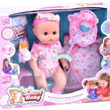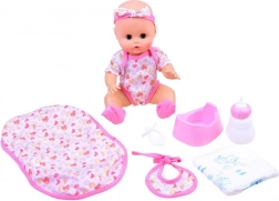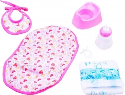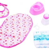 Nella confezione trovate tutto per una cura completa: bavaglino, biberon, ciuccio, pannolino e vasino. Preparate la bambola per la pappa e il cambio.