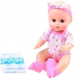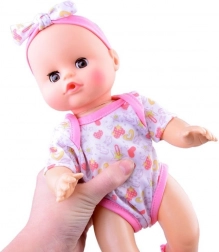 La bambola indossa un comodo body con morbida fascetta e calzini. Nella confezione trovate anche vasino, pannolino, bavaglino, biberon e ciuccio, così nulla ostacola una cura completa. L’altezza di circa 30 cm è ideale per le manine dei bambini e per un facile trasporto.
