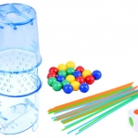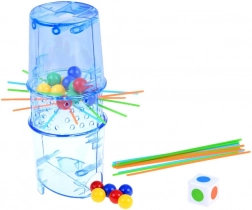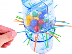 Trick Stick è il gioco ideale per chi ama concentrazione e strategia. I giocatori collocano a turno i bastoncini colorati nella torre e poi versano dentro le palline colorate. Vince chi riesce a non far cadere le palline!