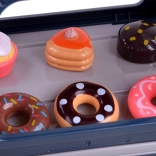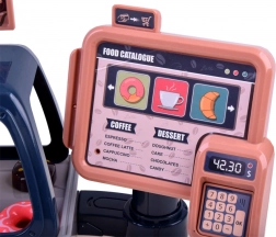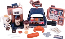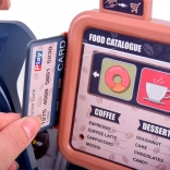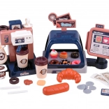 Esponi dolci, baguette e panino, prepara il caffè con bicchieri e coperchi. Inclusi monete, banconote e carta di pagamento per servire gli ospiti in modo realistico.