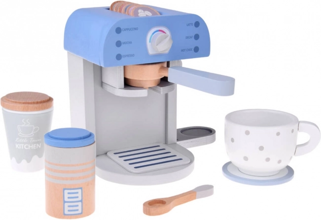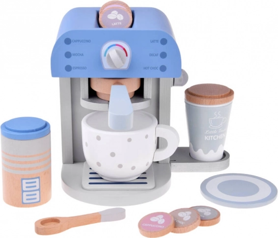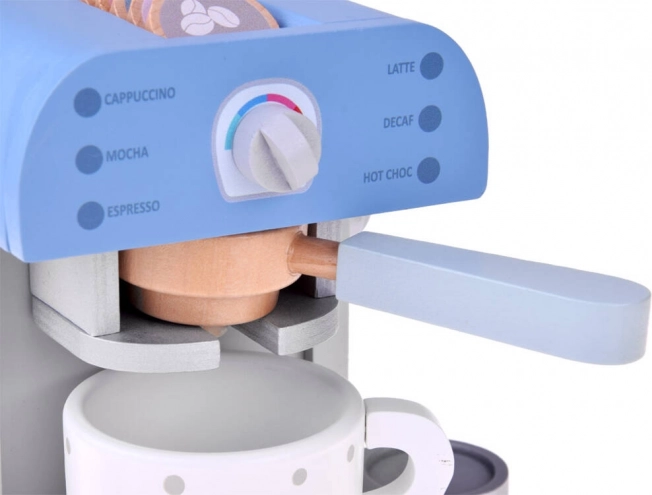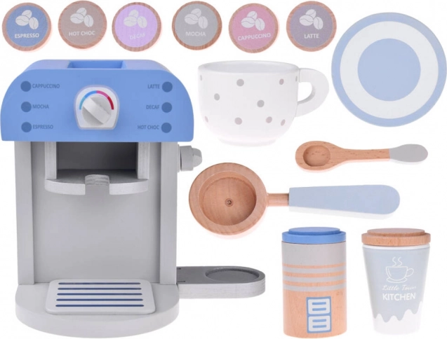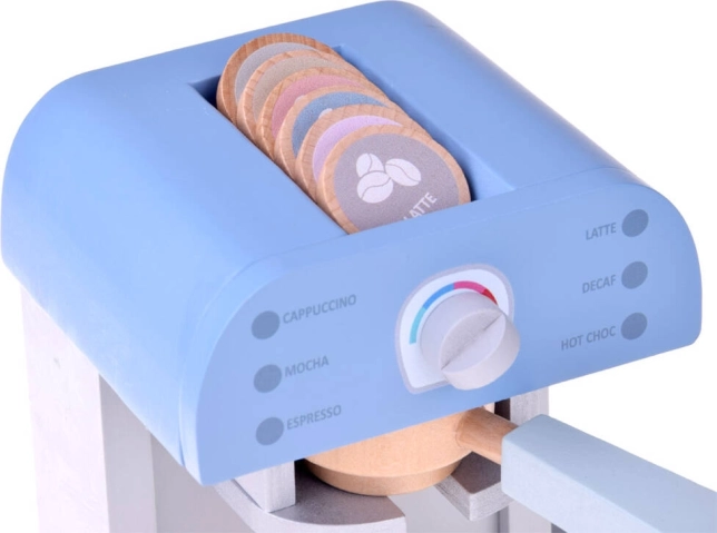 Macchina da caffè in legno per bambini in un elegante colore blu è il giocattolo perfetto per ogni cucina per bambini. Questo set elegante e ben realizzato include una macchina da caffè e accessori che garantiscono un gioco divertente ed educativo.