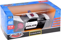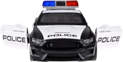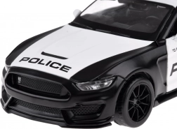 Regalate gioia ai piccoli e ai grandi appassionati di auto con il modello dell'auto di polizia Ford Mustang Shelby GT350. La carrozzeria in metallo nella combinazione nero‑bianco con scritte POLICE, le porte apribili e i lampeggianti donano al giocattolo un aspetto autentico. Premendo o aprendo le porte si attivano luci e sirena, rendendo il gioco ancora più realistico.