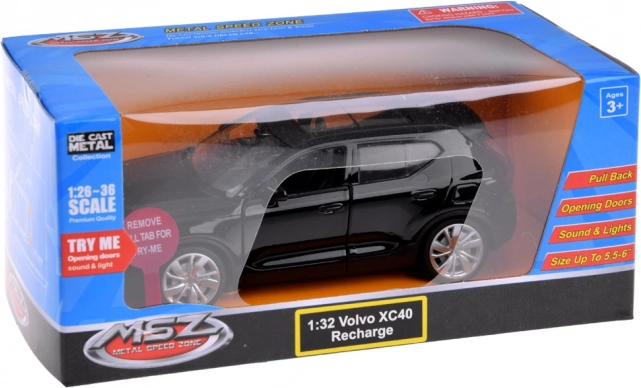 Regalate ai bambini la gioia di un modello Volvo XC40 in formato macchinina. Il modello Volvo XC40 Recharge in scala 1:32 sarà un ottimo complemento alla collezione di modellini d’auto. Il veicolo è realizzato con cura ed estetica, con grande attenzione ai dettagli, cosa che entusiasmerà ogni piccolo guidatore. La macchinina ha porte apribili e offre effetti sonori e luminosi. La Volvo è azionata dal sistema a friction power, il che significa che dopo essere stata spinta indietro su una superficie liscia si muove in avanti. Può anche essere spinta manualmente.