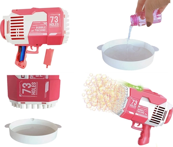 La struttura in plastica resistente, l’impugnatura ergonomica e il controllo intuitivo rendono la bazooka l’accessorio ideale per feste per bambini, matrimoni, party in giardino e il gioco quotidiano all’aperto. La ricca dotazione inclusa ti permette di iniziare subito dopo l’unboxing.
