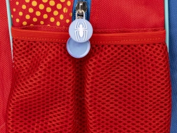 Il vano principale con tasca frontale con zip e tasca laterale in rete facilita l’organizzazione del materiale scolastico.