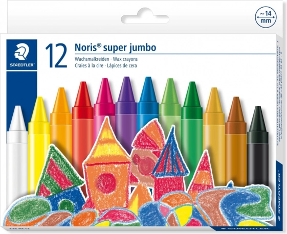 I pastelli a cera Staedtler Noris Jumbo offrono 12 colori vivaci che stimolano la creatività e l'immaginazione del tuo bambino. Questi pastelli sono senza odori e non tossici garantendo un uso sicuro. Con il loro design ergonomico sono ideali per le mani piccole e offrono una presa facile. La texture cerosa di qualità garantisce un disegno fluido.