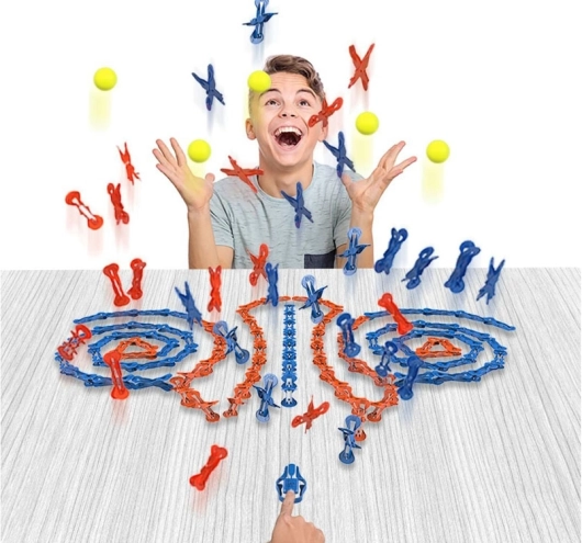 Il kit funziona sul principio della reazione a catena, il che consente di creare affascinanti effetti domino.