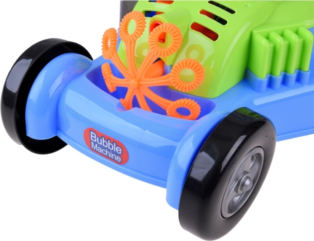 Versa la soluzione nel serbatoio e premi il pulsante rosso: il tagliaerba, mentre viene spinto, crea tante bolle scintillanti.