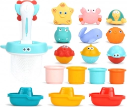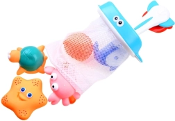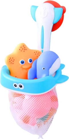 Trasforma il bagnetto in un momento di gioia! Questo ricco set per l’acqua include una retina con ventosa, barchette, bicchierini impilabili, sfere apribili e animaletti di gomma galleggianti. Grazie ai colori vivaci e alle attività varie, favorisce la motricità fine, la coordinazione occhio–mano e il gioco creativo in acqua. La pratica ventosa permette di trasformare la retina in un organizer per i giocattoli, mantenendo sempre il bagno in ordine.