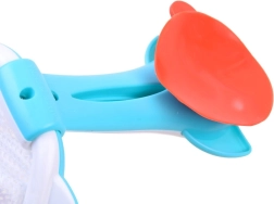 La retina si applica facilmente su superfici lisce e si trasforma in un canestro per i giochi. Il bambino può allenarsi a “fare canestro” e imparare a riordinare dopo il bagnetto.