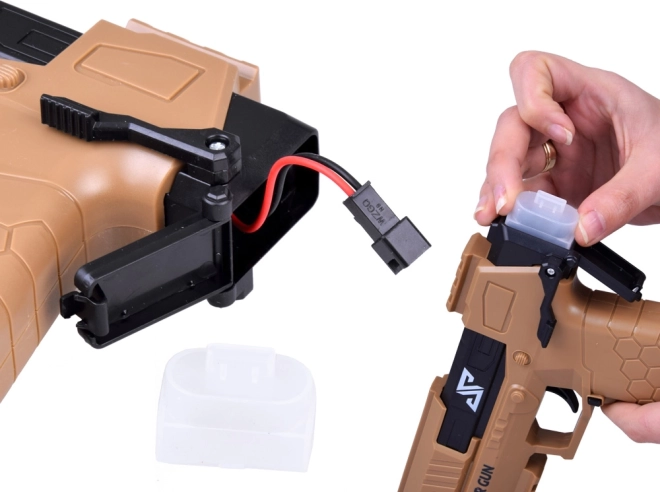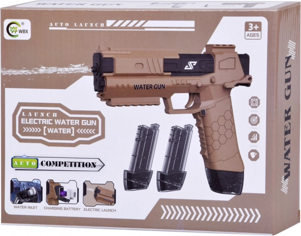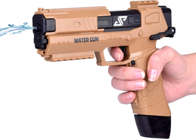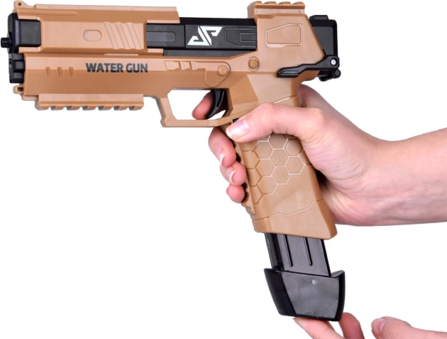 Questa moderna pistola ad acqua utilizza un meccanismo elettrico – premi il grilletto e il motore avvia immediatamente un flusso d'acqua continuo. La struttura in plastica resistente e l'impugnatura ergonomica con texture antiscivolo garantiscono una presa sicura e un controllo agevole anche per i più piccoli.
